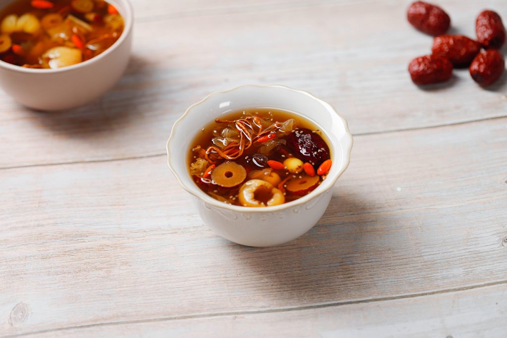 Cho nước, lá dứa, hạt sen, long nhãn, táo đỏ và đường phèn vào bình trôn đun 10 phút/100°C/(/tốc độ x.
