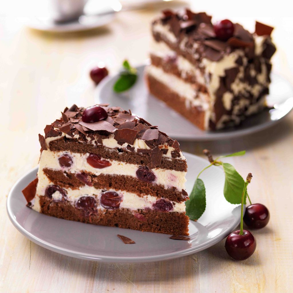 Đặt lớp dưới cùng của bánh lên đĩa và phủ đều 30 g rượu Kirsch. Phết một nửa lượng siro cùng anh đào lên bánh và phủ 1/4 hỗn hợp kem đã chuẩn bị lên trên (phết ra các mép bánh). Rắc lên trên trên kem với một nửa lượng socola nghiền đã chuẩn bị. Đặt lớp bánh thứ hai lên trên phần kem và phủ đều 30 g rượu Kirsch, phết phần siro còn lại và 1/4 hỗn hợp kem. Rắc lên trên kem một nửa lượng socola còn lại. Đặt lớp bánh cuối cùng lên trên và phủ đều 20 g Kirsch còn lại, sau đó phết đều hỗn hợp kem còn lại lên trên và các mặt của bánh. Trang trí các cạnh của bánh bằng nửa quả anh đào đã để riêng. Trang trí mặt bánh với sô cô la bào và đặt vào tủ lạnh ít nhất 1 giờ trước khi ăn.
