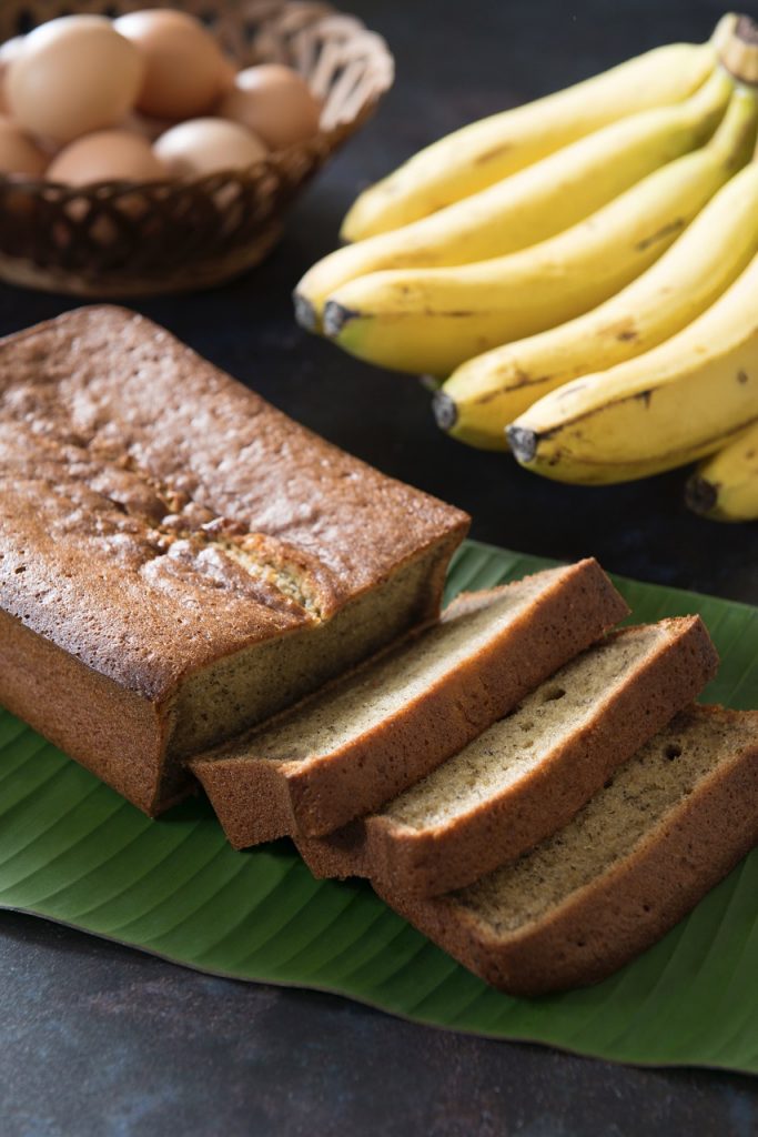 Nướng bánh trong 45-60 phút (150°C) hoặc đến khi bánh chín (dùng tăm để kiếm tra nếu bột bên trong không còn ướt là bánh đã chín). Để bánh nguội trong khuôn khoảng 5 phút sau đó chuyển ra giá cho nguội hoàn toàn. Cắt thành từng lát và thưởng thức.