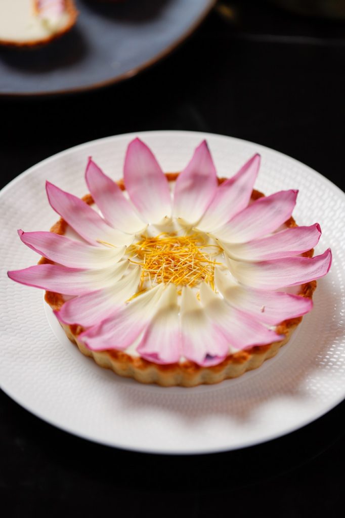 Cho sen vào bình trộn, xay 5 giây/tốc độ 7. Dùng thìa đa năng gạt nguyên liệu trên thành bình trộn xuống.