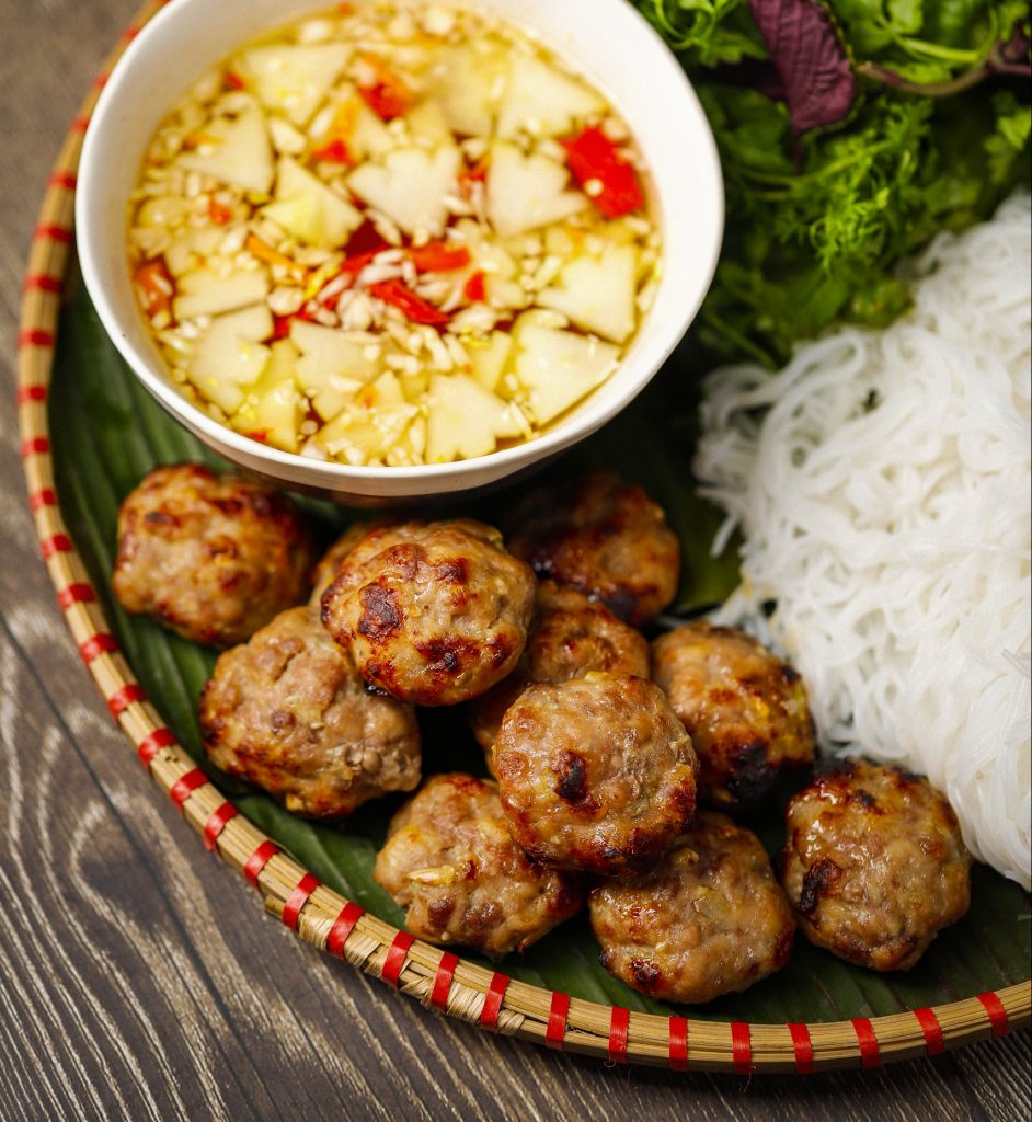 Gắp chả đã nướng chín và dưa góp vào bát, chan nước mắm chua ngọt. Rắc tiêu lên trên và thưởng thức nóng cùng với bún, rau sống.