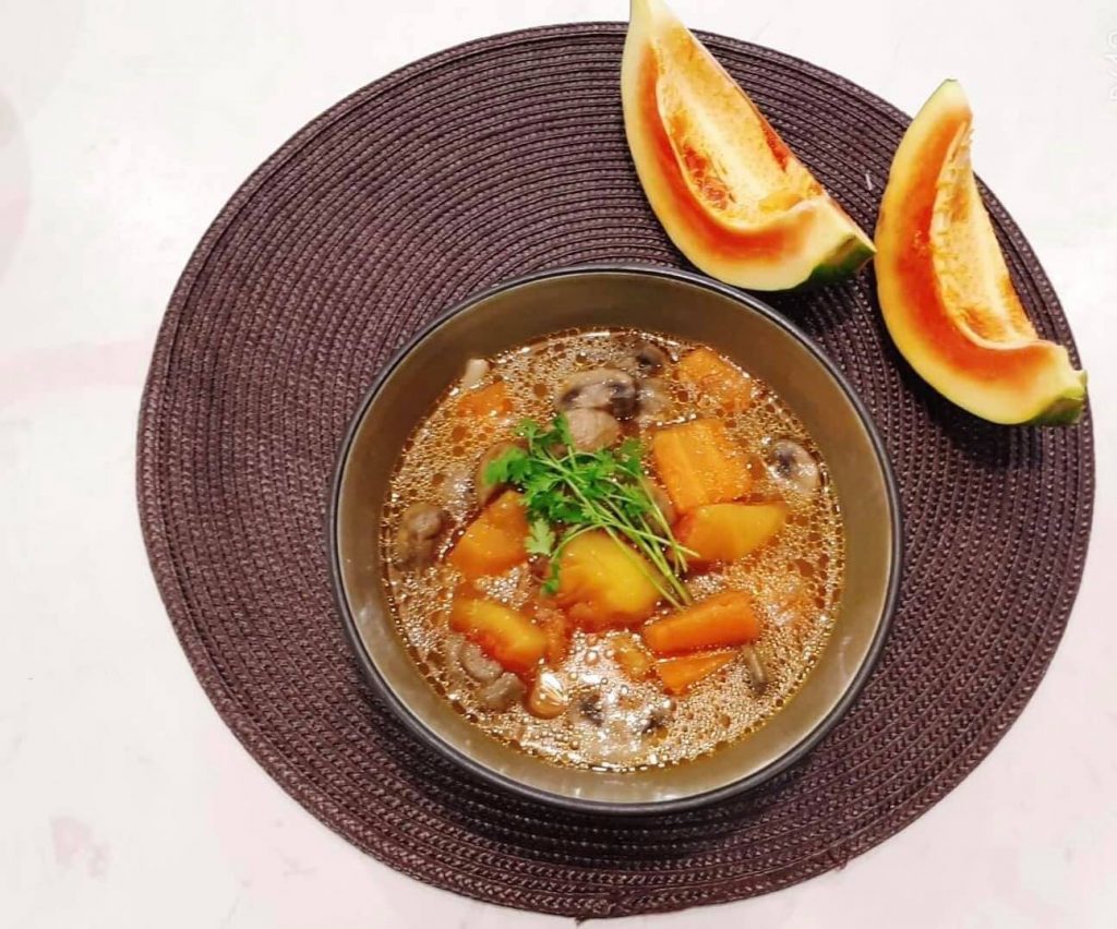 Cho canh ra bát, rắc hạt tiêu, rau mùi thái nhỏ và thưởng thức khi còn nóng.