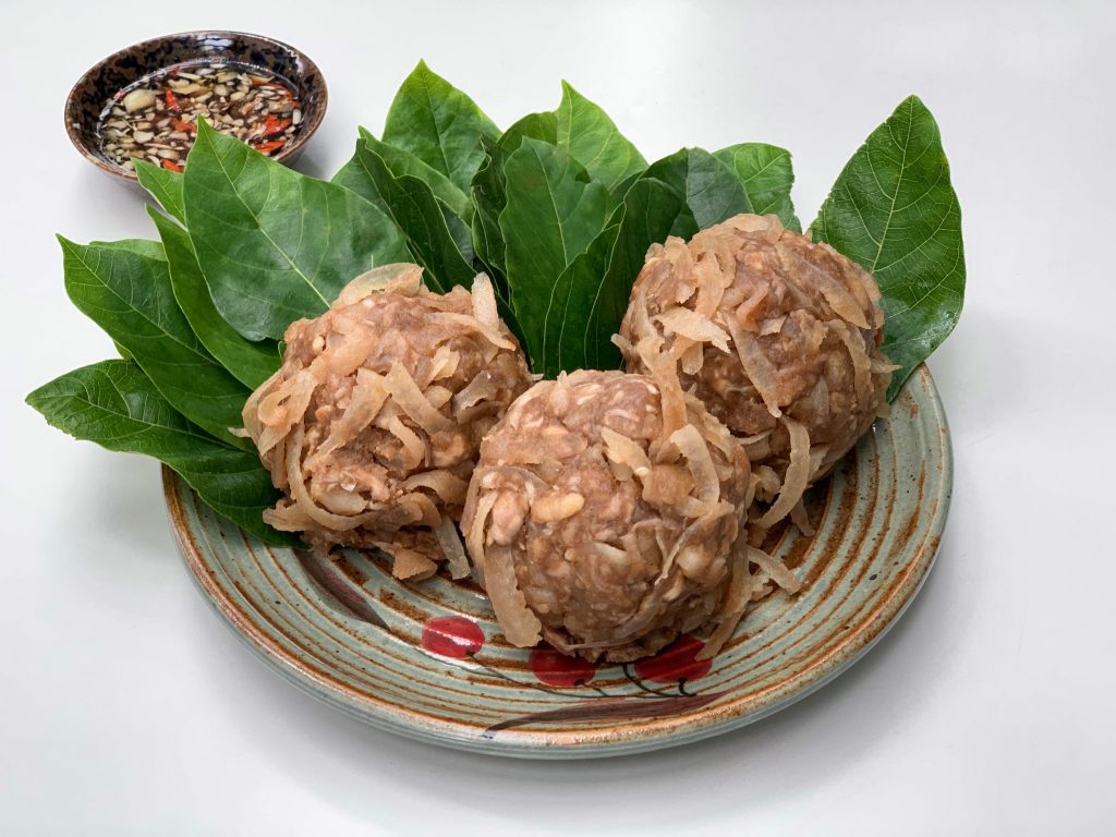 Nắm chặt hỗn hợp thịt lại thành từng nắm tròn. Thưởng thức cùng lá sung và nước mắm chấm chua ngọt tùy khẩu vị.