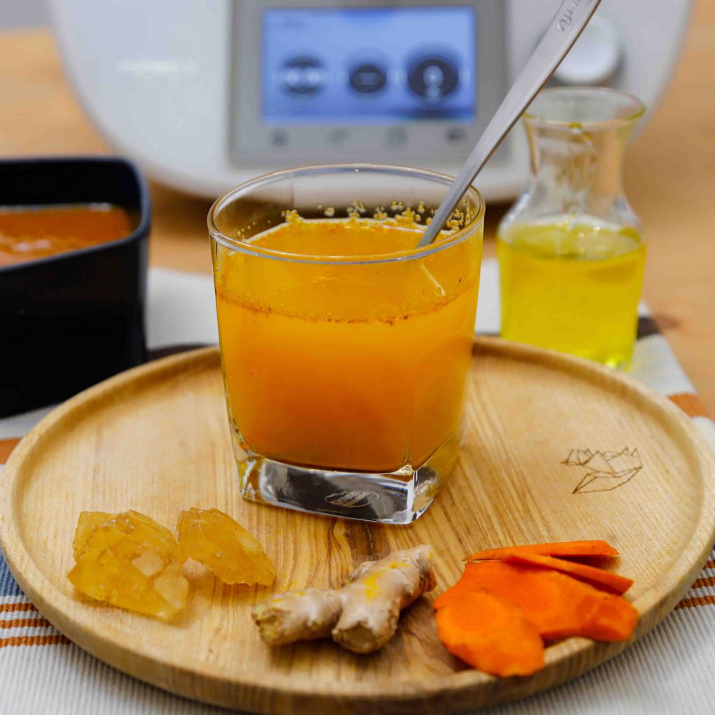 Khi sử dụng, hòa tan khoảng 1 thìa canh (15 g) cốt gừng nghệ với 1 cốc nước ấm (40°C) tùy khẩu vị.