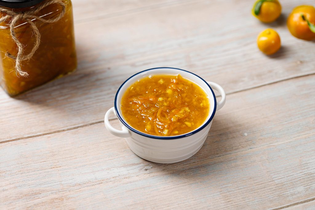 Quất ngâm với nước và một chút muối trong khoảng 30 phút, vớt ra rửa sạch, để ráo nước. Đặt vợt lọc lên trên một cái bát. Cắt đôi quả quất và vắt quất lấy nước cốt vào bát, loại bỏ, giữ lại vỏ quất. Rửa sạch vỏ quất với nước, để ráo. Dùng dao sắc cắt vỏ quất thành từng sợi mỏng.