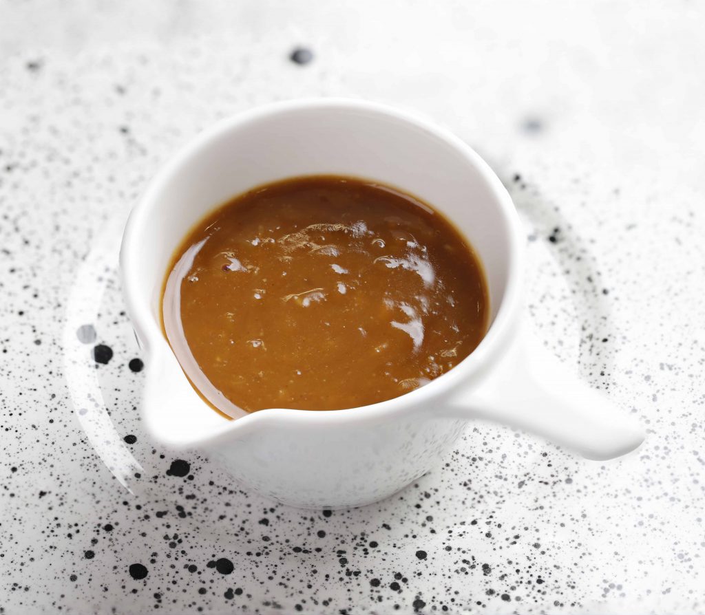 Cho nước ép dứa, mật ong, bơ lạc, nước tương, nước cốt chanh 10 giây/tốc độ 4, gạt nguyên liệu và lặp lại 1 lần nữa (nếu cần thiết). Cho ra bát và sử dụng làm nước sốt chấm các loại rau, cuốn chay,... tùy khẩu vị.