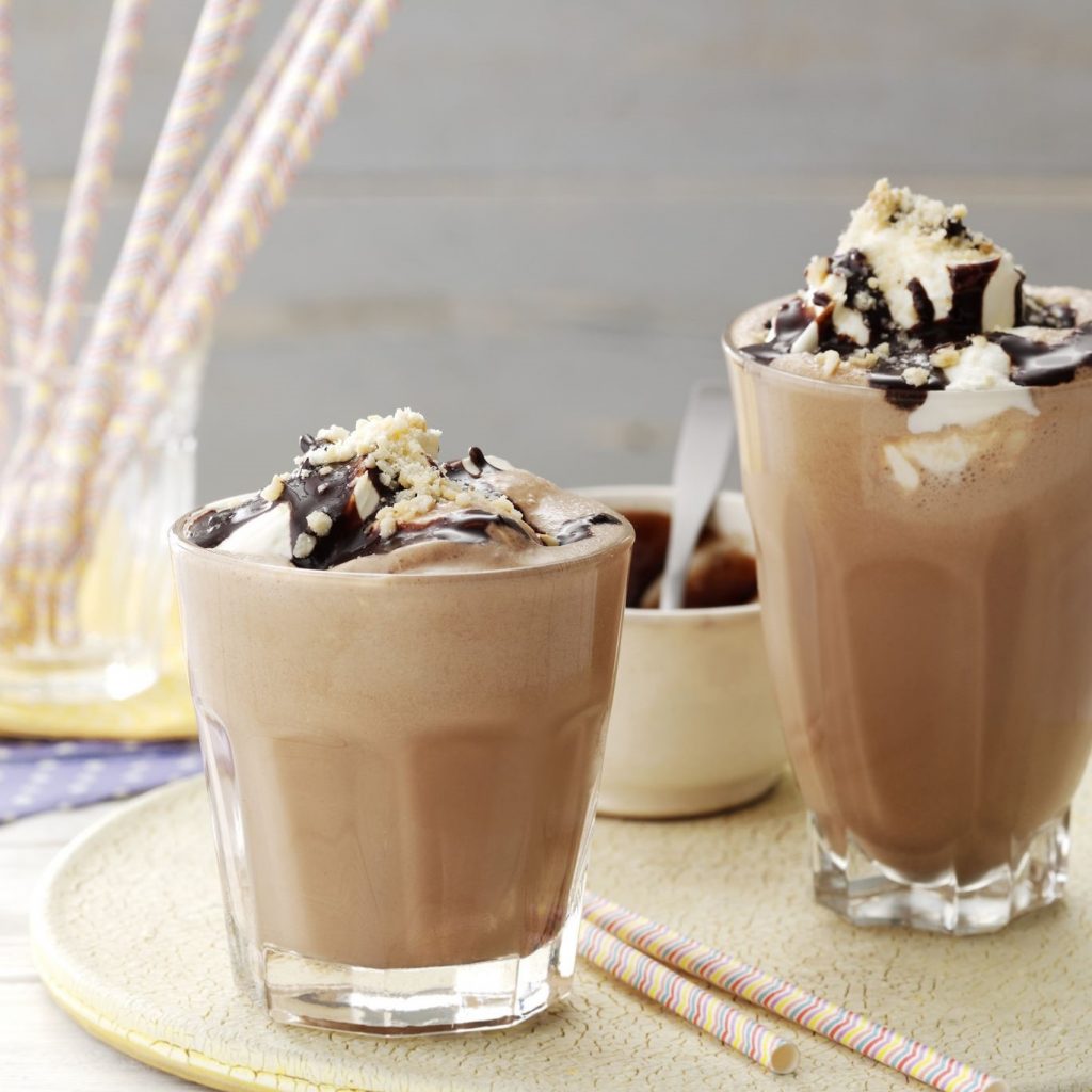 Cho kem vani và 150 g sữa vào hỗn hợp trong bình sau đó trộn 30 giây/tốc độ 8. Cho sữa lắc ra cốc. Cắt một góc túi bóp kem và phun kem lên trên sữa lắc, sau đó trang trí với sốt cacao hạt phỉ đã chuẩn bị và hạt phỉ băm vụn. Thưởng thức ngay.