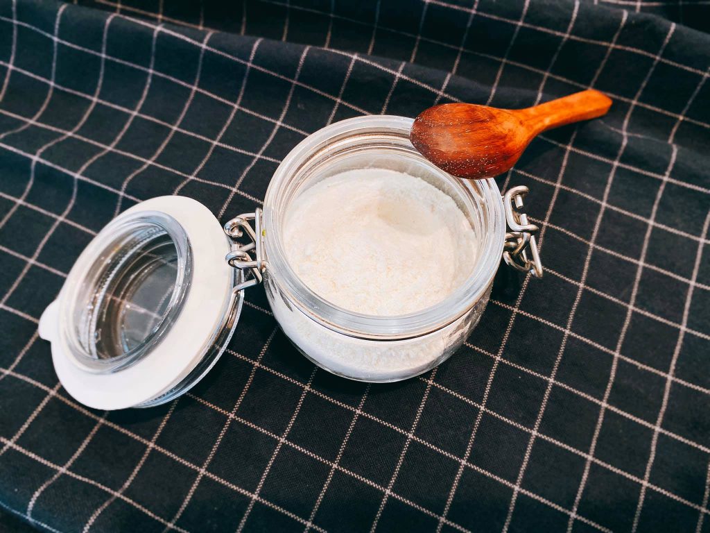 Cho gạo vào bình trộn, nghiền 1 phút/tốc độ 10. Lấy ra và để nguội, bảo quản trong hộp kín.