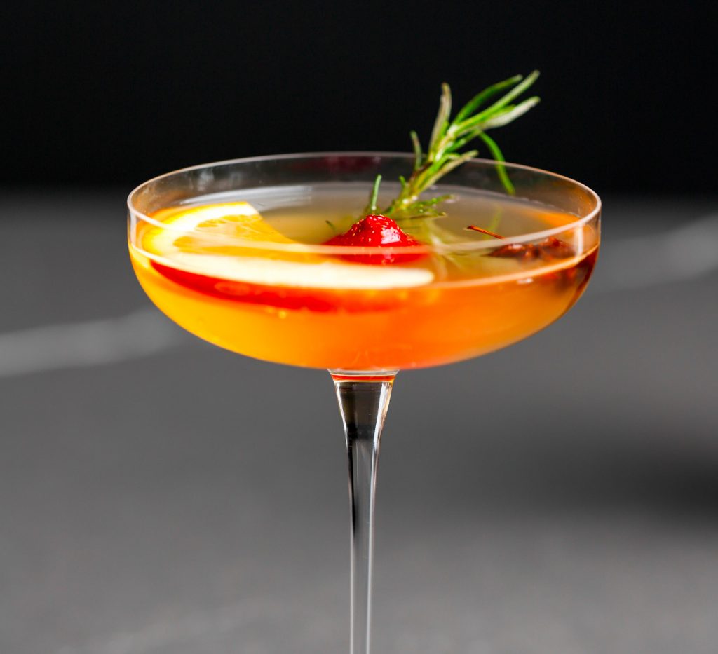 Cho trà ra cốc, thêm đá viên và trang trí với một vài lát cam vàng, nhánh cỏ xạ hương trước khi thưởng thức.