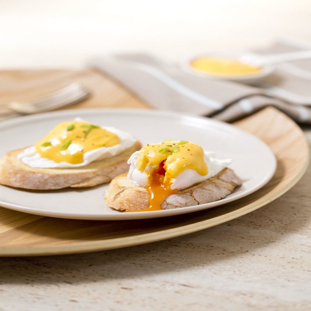 Thưởng thức trứng chần với bánh mì nướng cùng sốt Hollandaise.